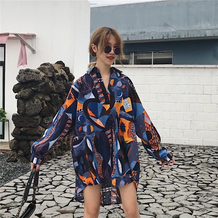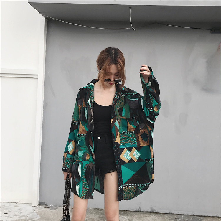 2022 Spring and Summer Shirt Women’s Long Printed Long Sleeve Loose Thin Sunscreen Cardigan Vintage