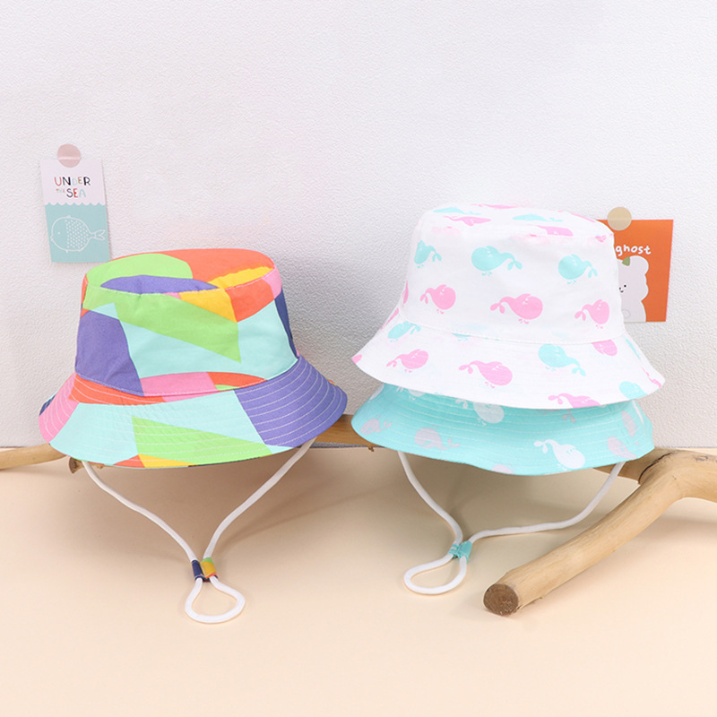 2022 Spring Children's Fisherman Hat Pastoral Printed Baby Sunshade Basin Hat Fresh Lace-up Sunscreen Baby Hat