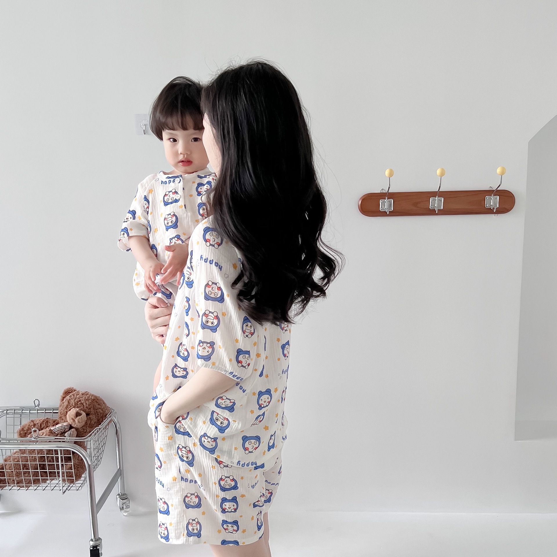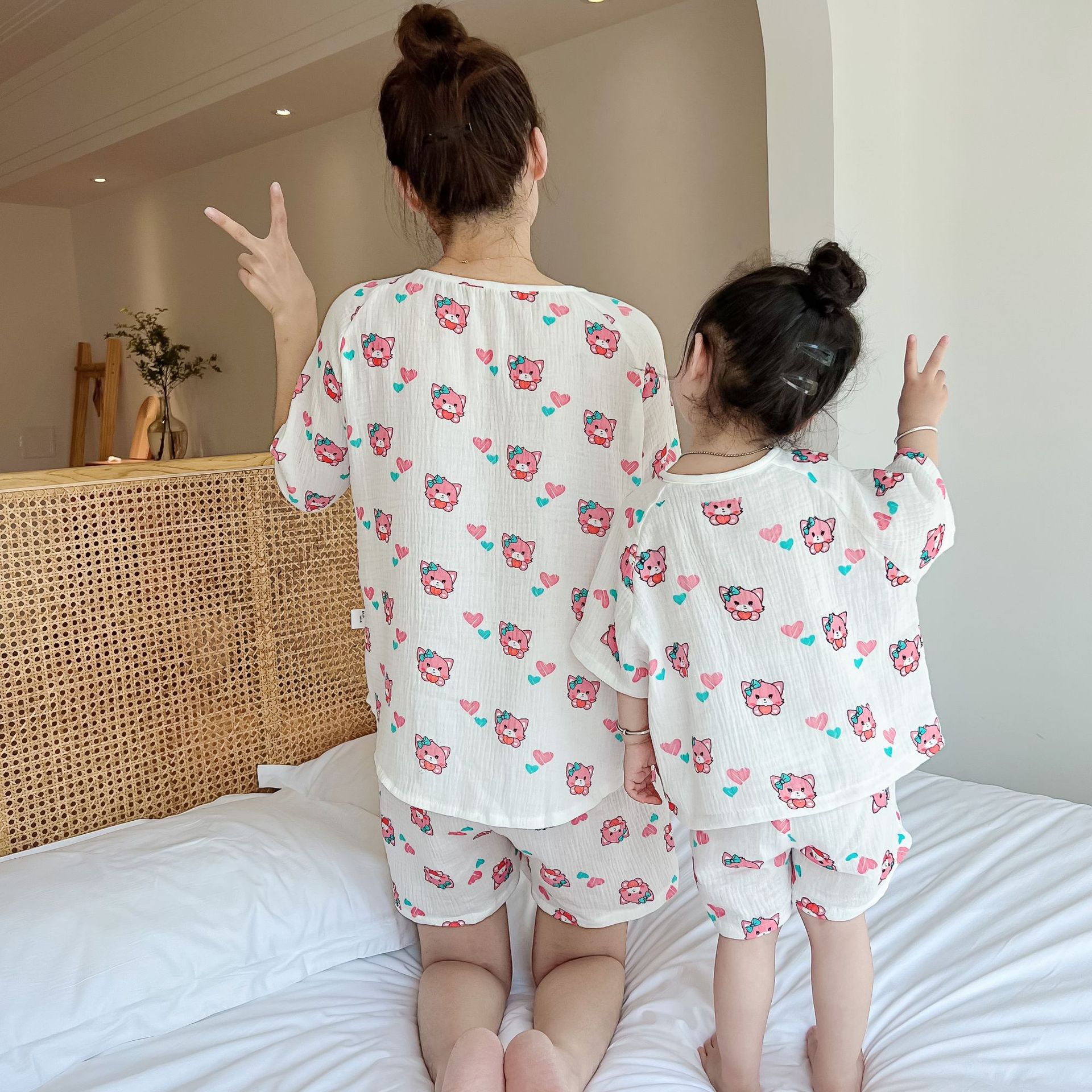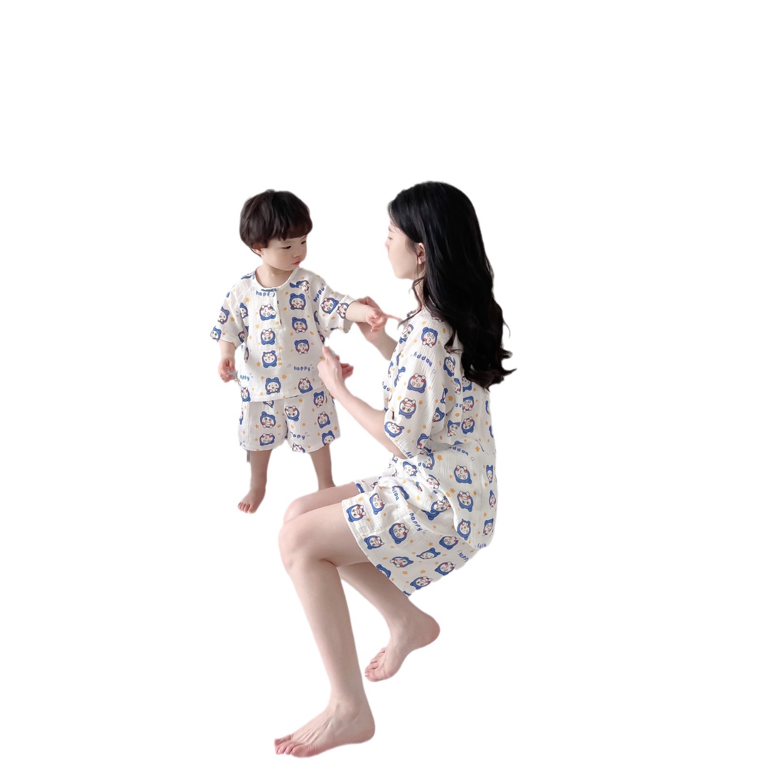 | nameOriginal | 2022 Summer New Parent-Child Double-Layer Cotton Yarn Washed Set Mother's Short-Sleeved Shorts Air-Conditioned Room Pajamas |