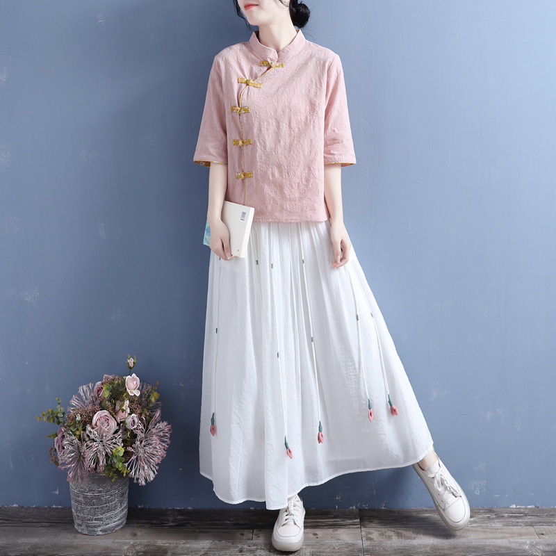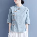 | nameOriginal | 2022 summer retro Chinese style artistic cotton and linen jacquard diagonal buckle stand collar half sleeve Tang suit Chinese style top for women |