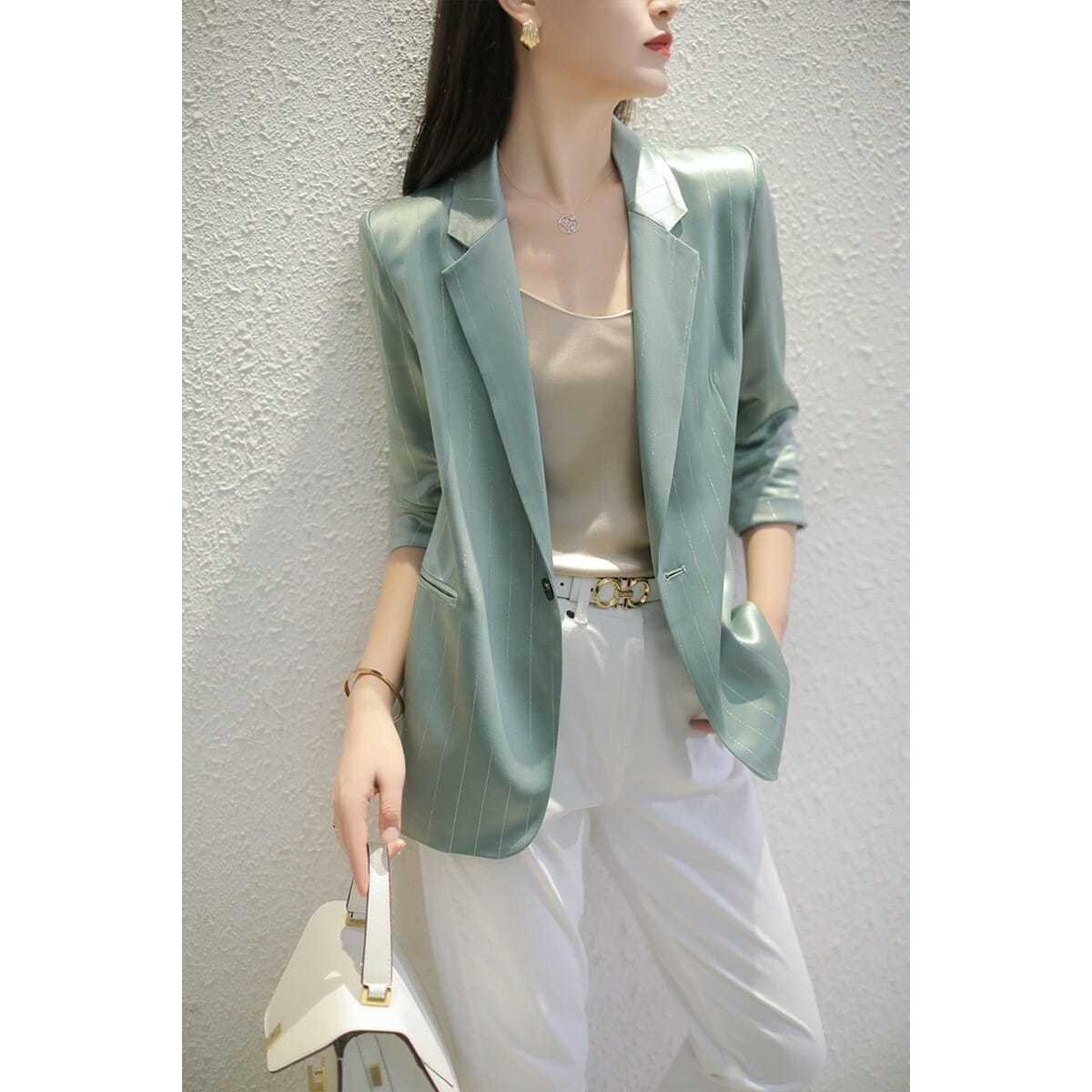| nameOriginal | 2022 Summer Thin plus size Suit Women's Slim Look Bright Silk Seven-Sleeve Suit Sun-Protective Shirt chubby girl Suit Coat Women |