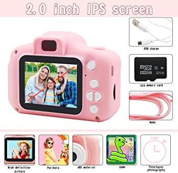 Introducing the FACE HUB47 Toddler Camera, a fun and educational toy for children that doubles as a high-quality digital camera. With a 32GB memory card included, this rechargeable camera is easy to operate and supports taking pictures, videos, and playing games. It also offers a variety of multi-picture and video effects, making it the perfect gift for children aged 3-10.