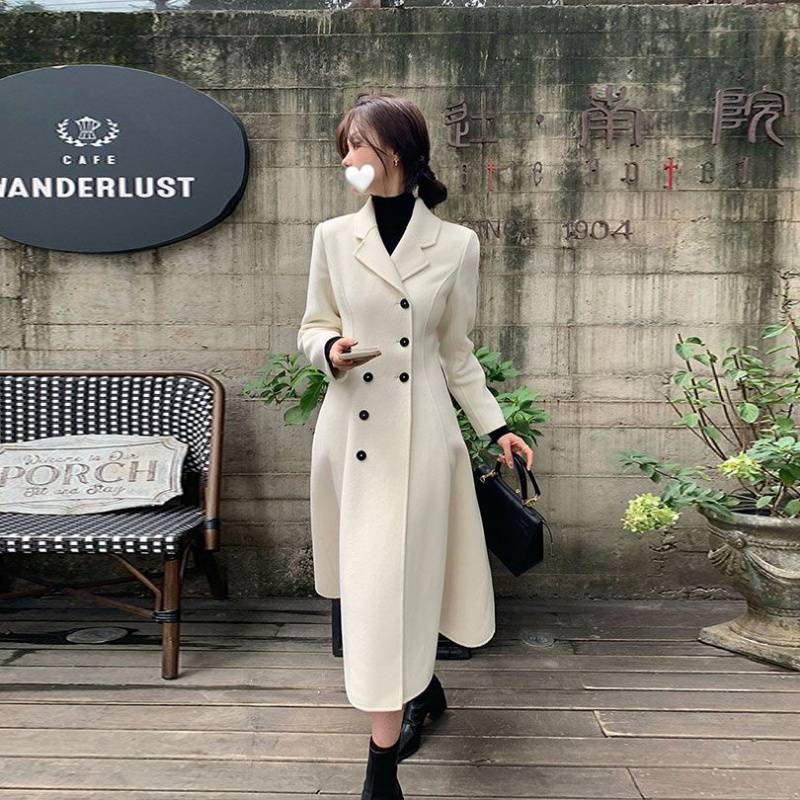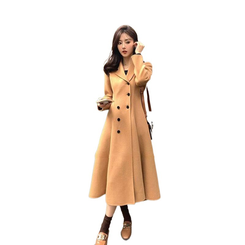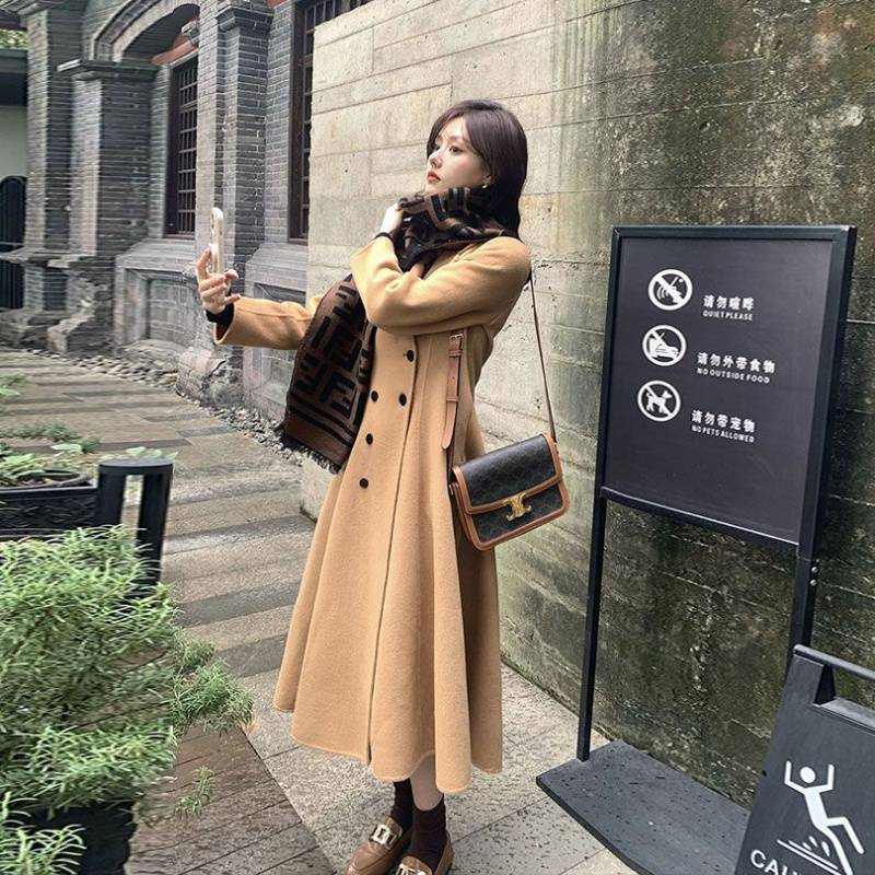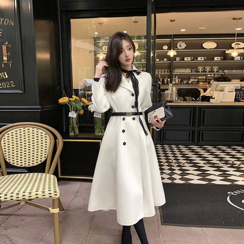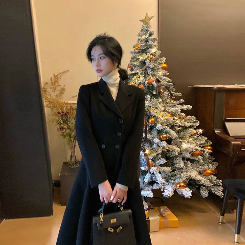 | nameOriginal | 2022 Winter new French retro Hepburn style black woolen coat women's waist-tight long woolen coat |