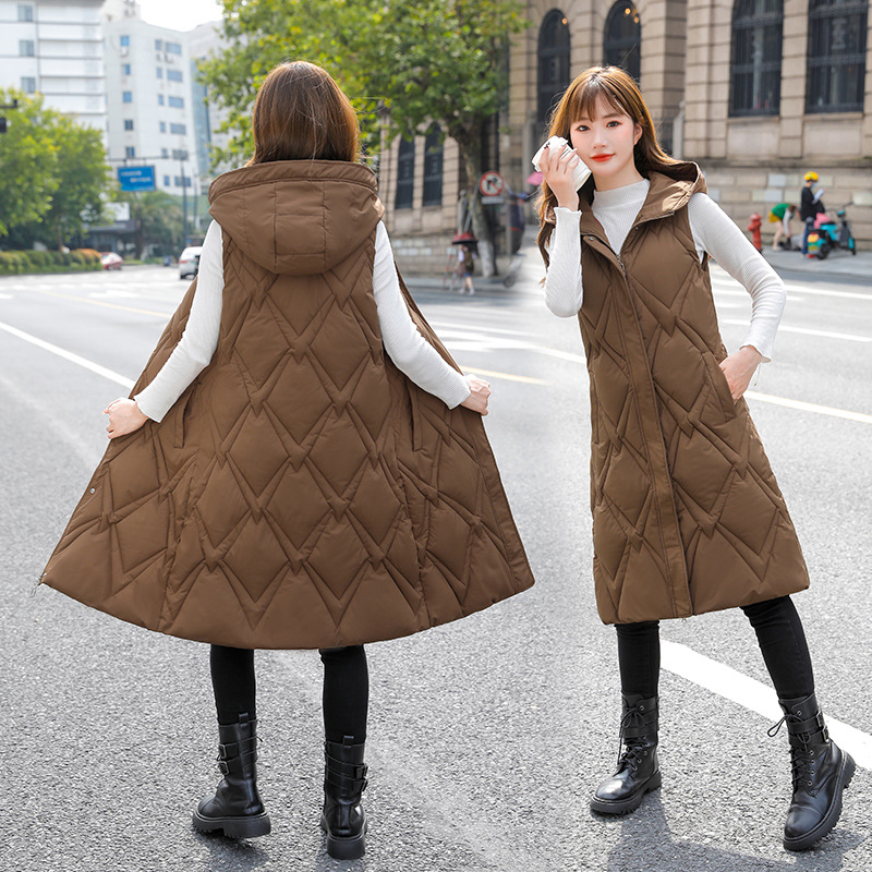 | nameOriginal | 2022 Winter new mid-length cotton vest women's fashion slimming solid color bread clothing loose vest hooded |