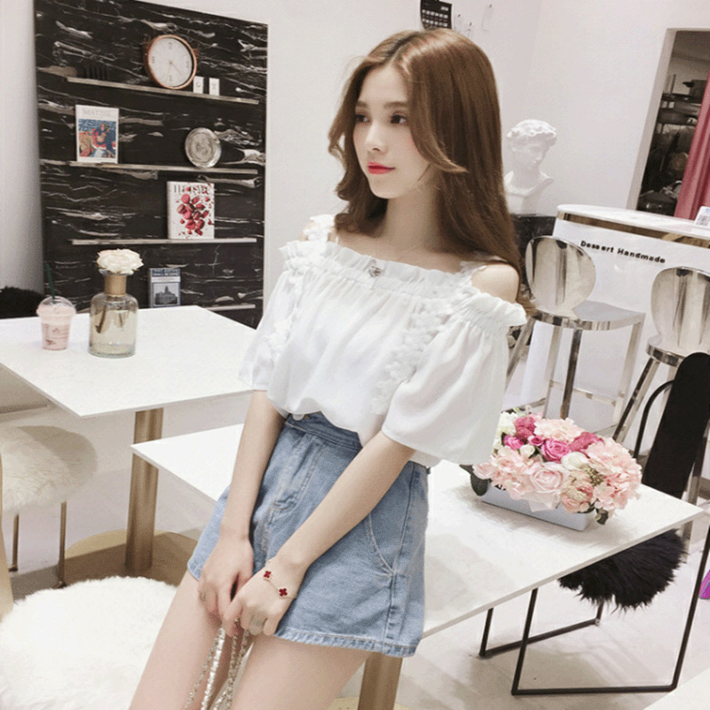 | nameOriginal | 2022 Women's Fairy Super Fairy Sling Short-sleeved White Top Off-shoulder Chiffon Shirt Belly Covering T-shirt |