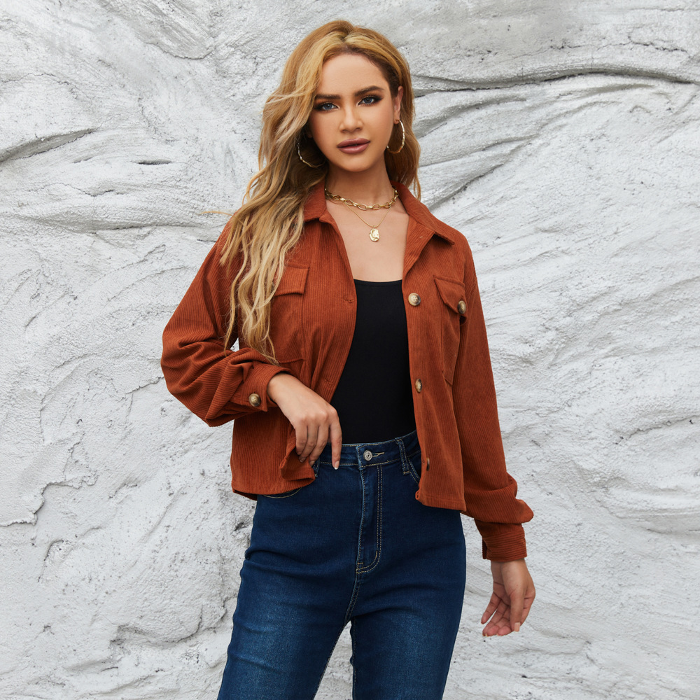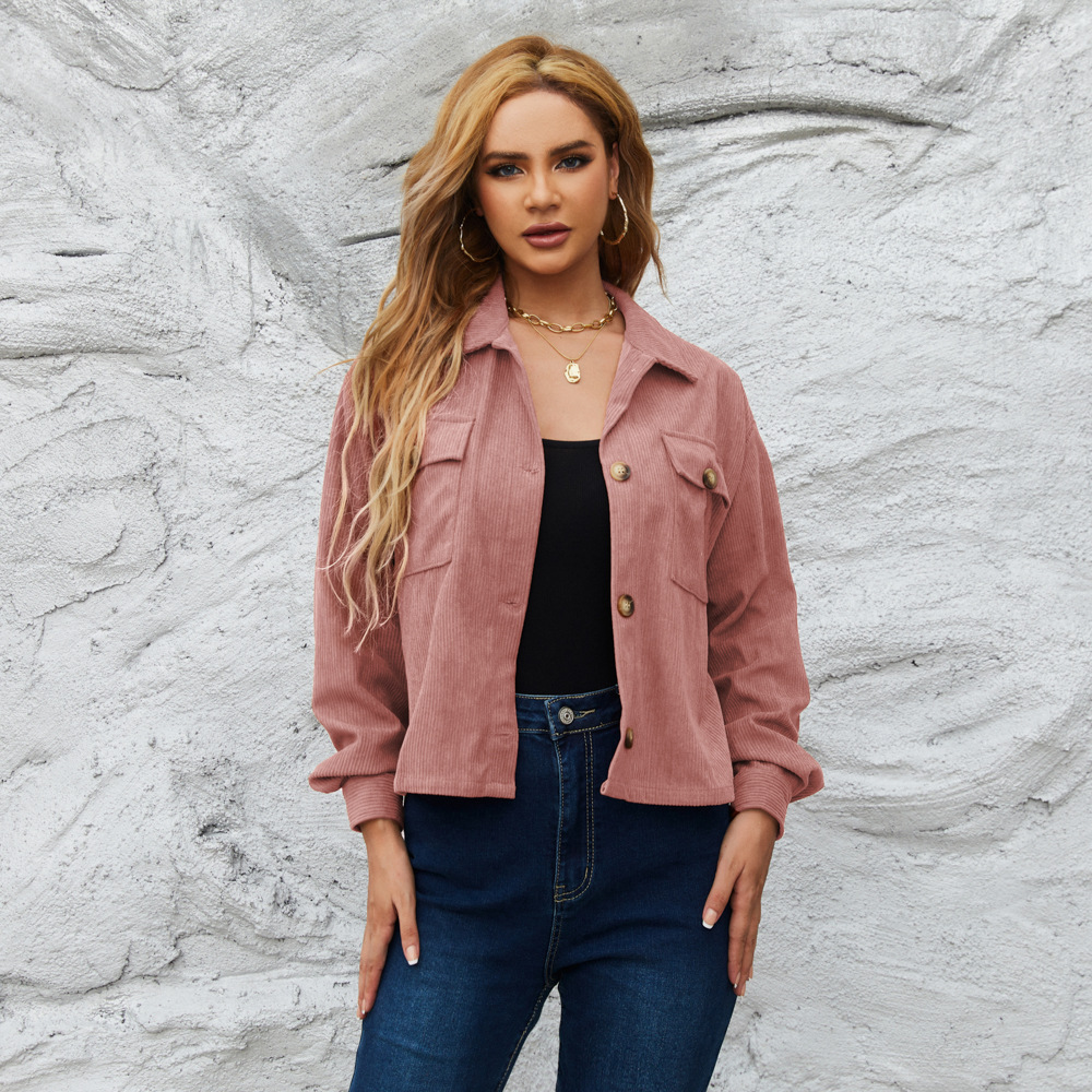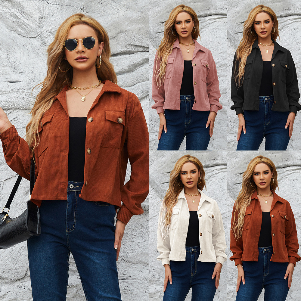 | nameOriginal | 2022polo short corduroy long-sleeved shirt solid color coat women's autumn and winter lapel loose pocket jacket coat |