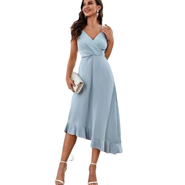 2023 AliExpress Amazon Cross-border Foreign Trade Summer Women's Sling Sexy Backless Ruffled Solid Color Dress