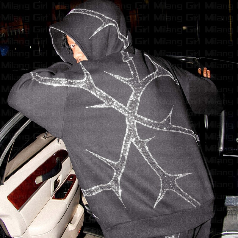 | nameOriginal | 2023 AliExpress new women's street hoodie rhinestone zipper European and American hooded sweater |