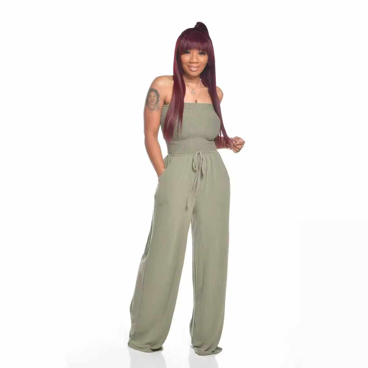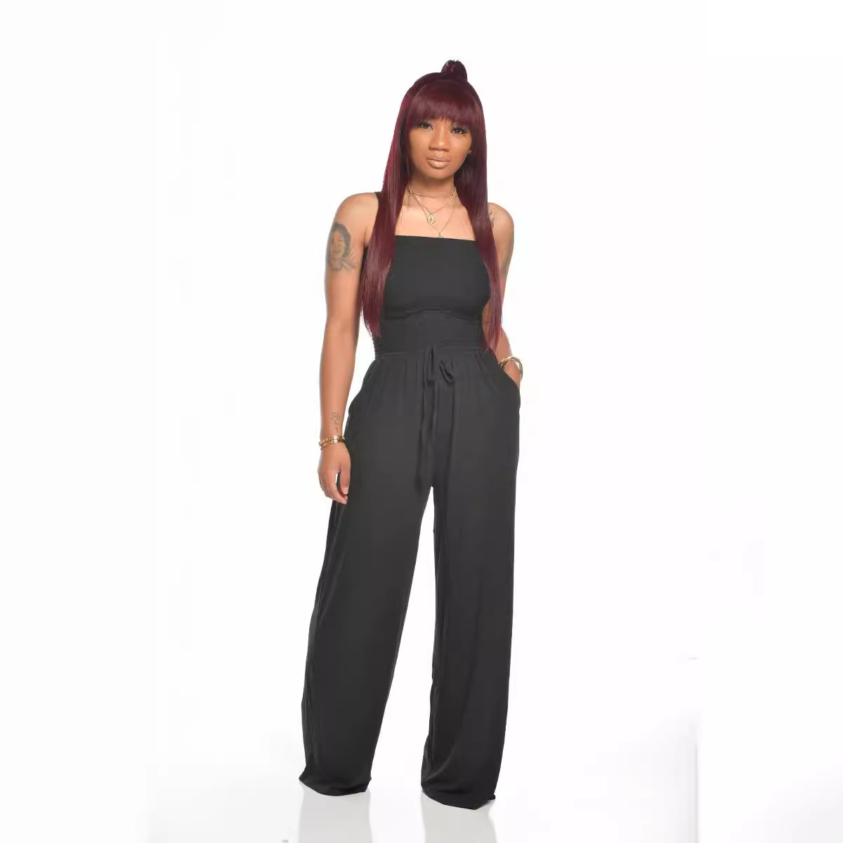 | nameOriginal | 2023 Amazon cross-border new European and American women's casual flat shoulder wrapped chest wide leg jumpsuit |