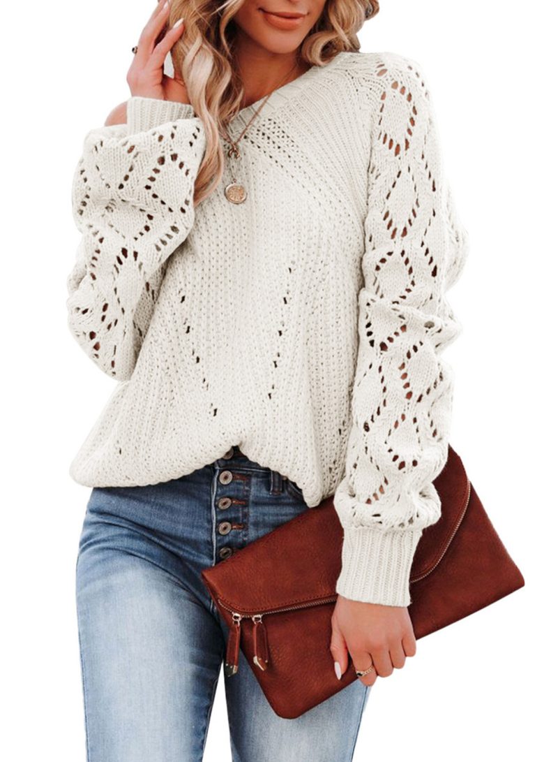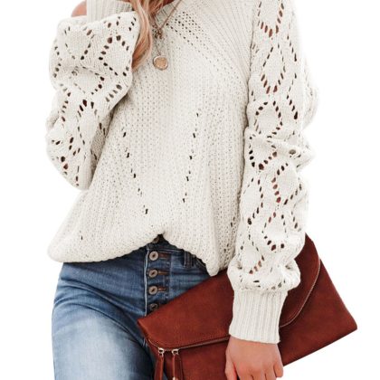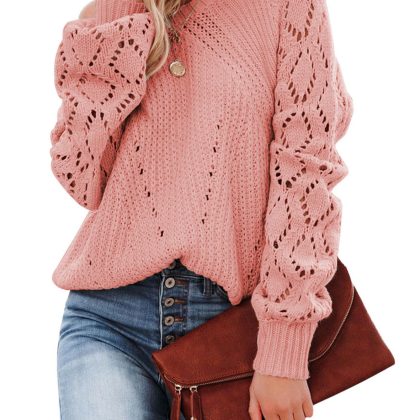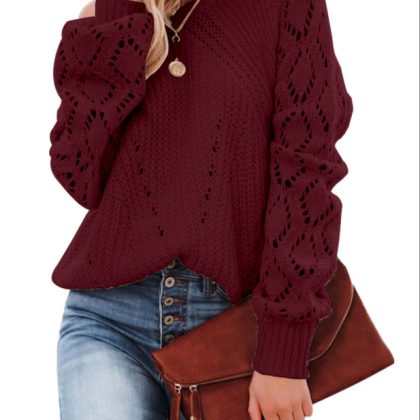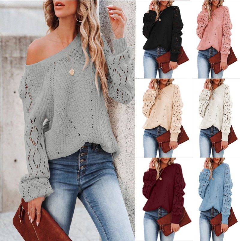 nameOriginal | 2023 Amazon cross-border solid color loose top women's autumn and winter foreign trade new hollow pattern round neck sweater women |