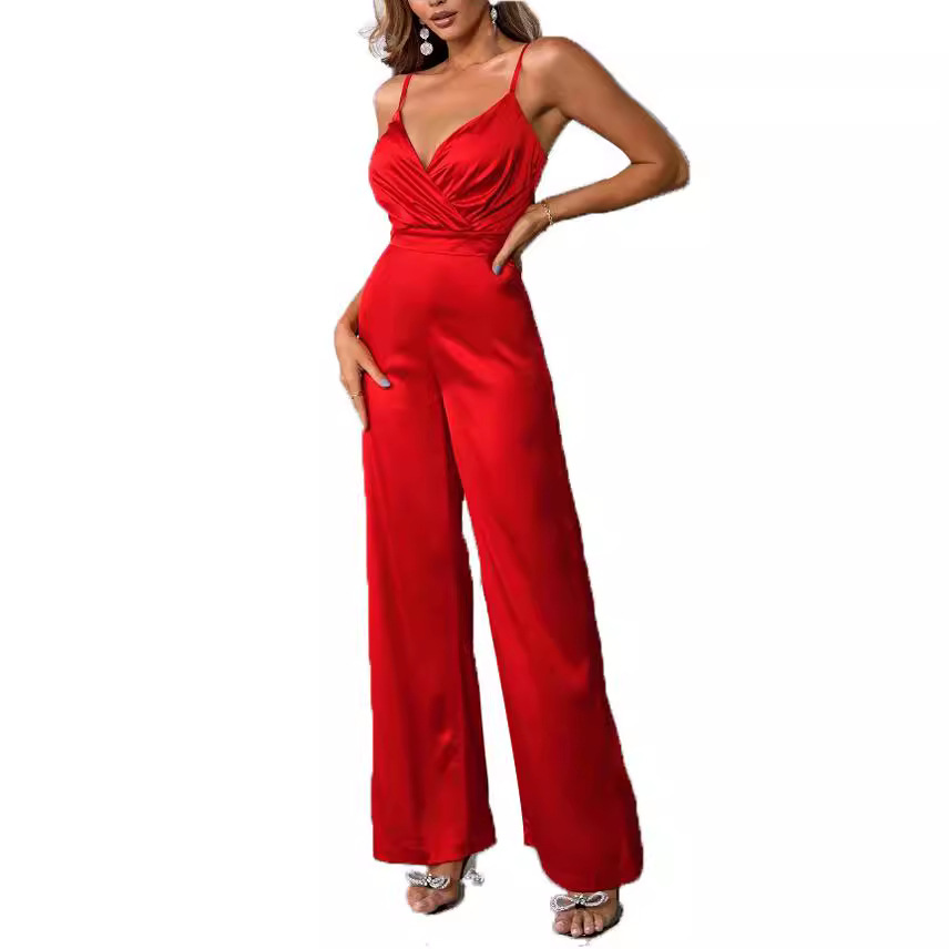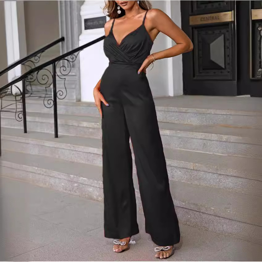 | nameOriginal | 2023 Amazon cross-border spring and summer new European and American high waist sexy sling high-grade temperament V-neck wide leg jumpsuit |