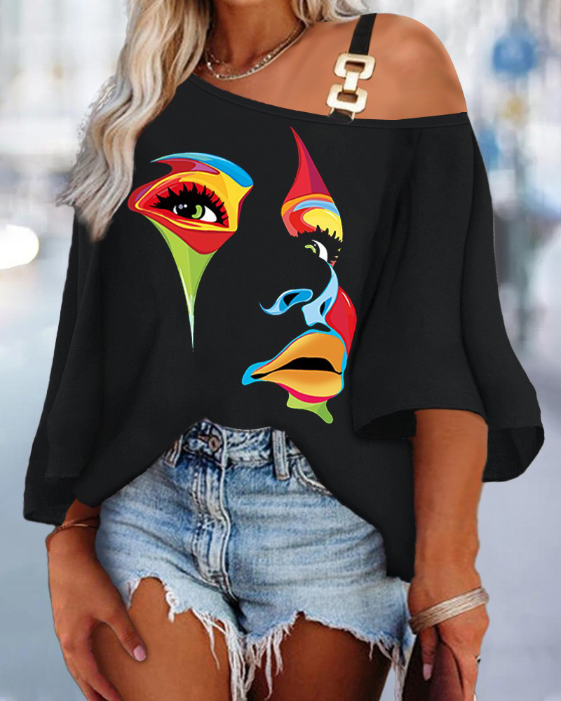 2023 Amazon independent station autumn plus size European and American fashion stitching loose casual top women's printed T-shirt