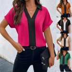 | nameOriginal | 2023 Amazon Independent Station European and American Summer New Contrast V-neck Raglan Sleeve Lapel Loose Shirt Top Women |