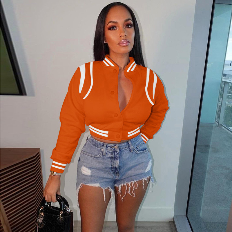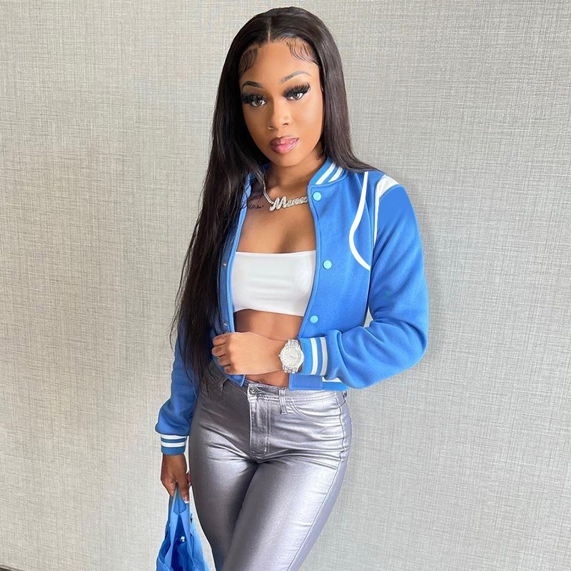 2023 Amazon long sleeve contrast color short button baseball uniform European and American autumn new fashion all-match hot girl jacket