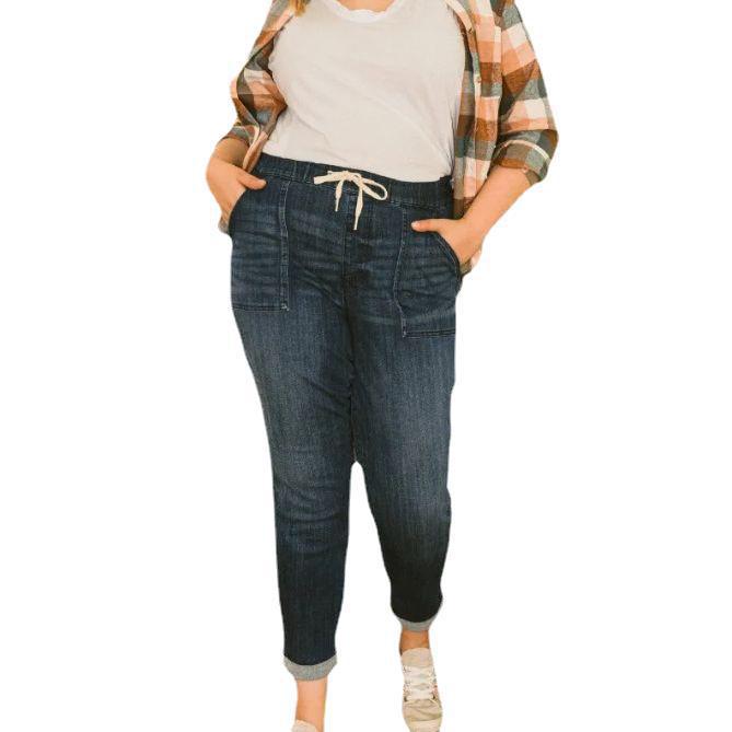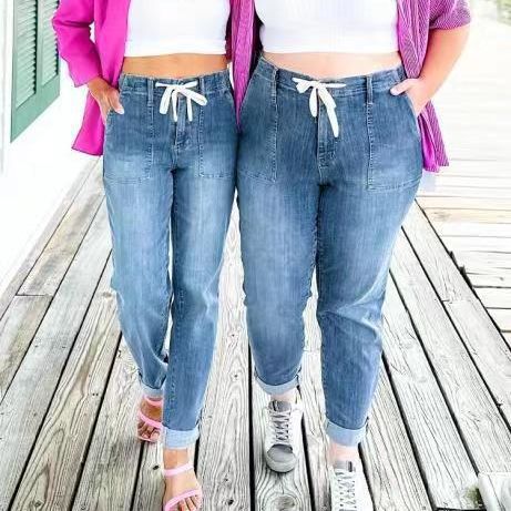 | nameOriginal | 2023 Amazon plus size Denim women's pants loose stretch harem pants elastic waist all-match casual straight pants |