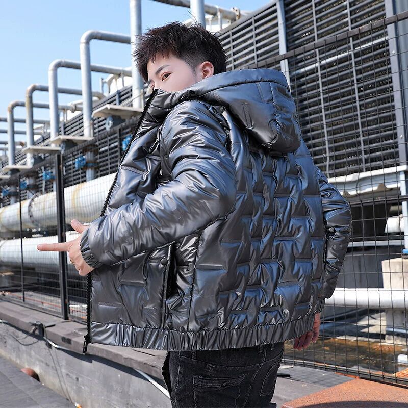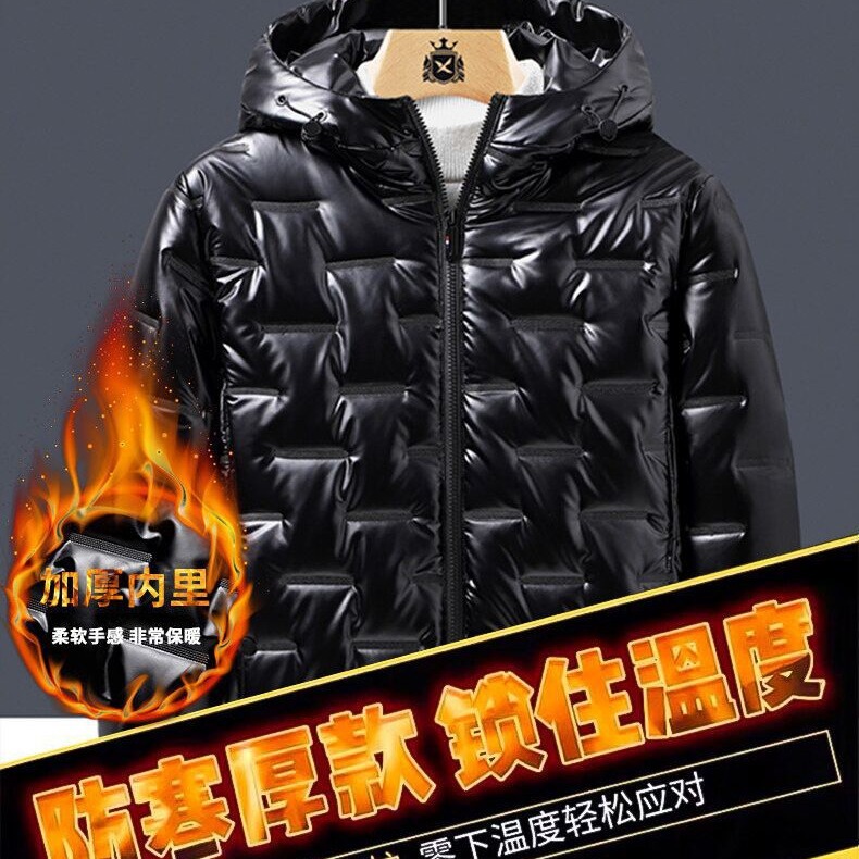 2023 autumn and winter bright surface pressure rubber hooded cotton-padded jacket outdoor leisure sports fashion warm cotton-padded jacket men’s coat