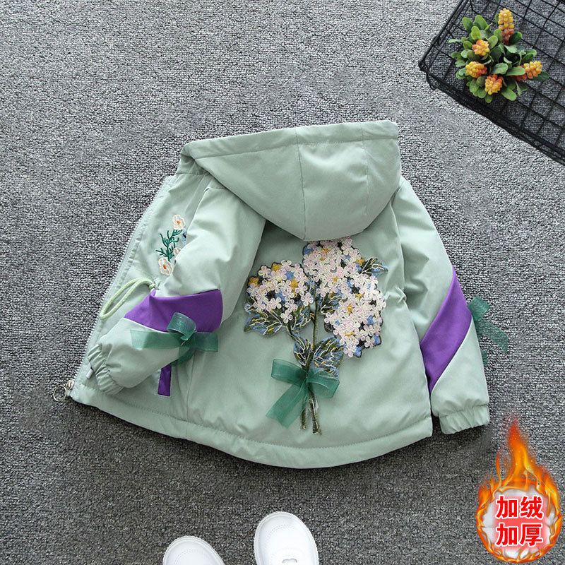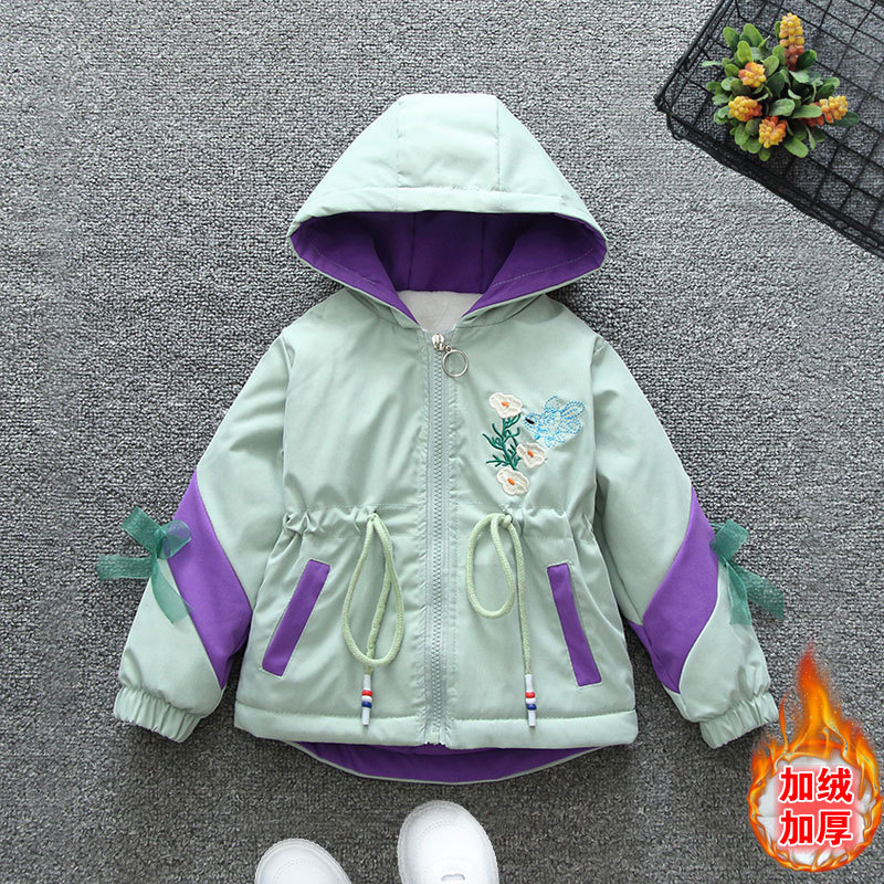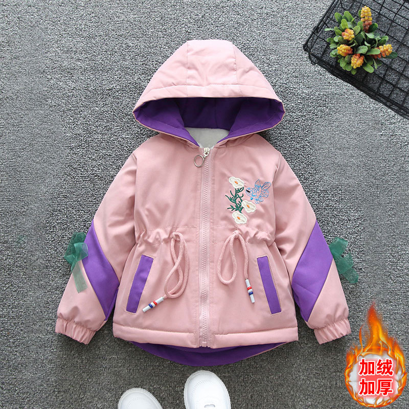 2023 Autumn and Winter Children’s Warm Thickened and Velvet Cute Girls’ Waist Tight Rush Clothes Middle and Big Children’s Windbreaker Hooded Jacket