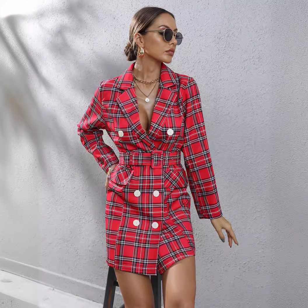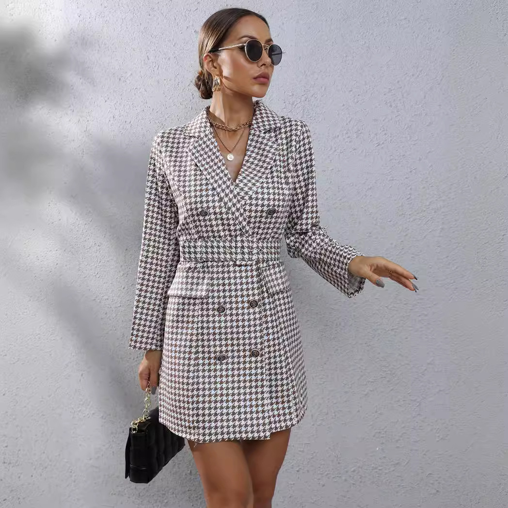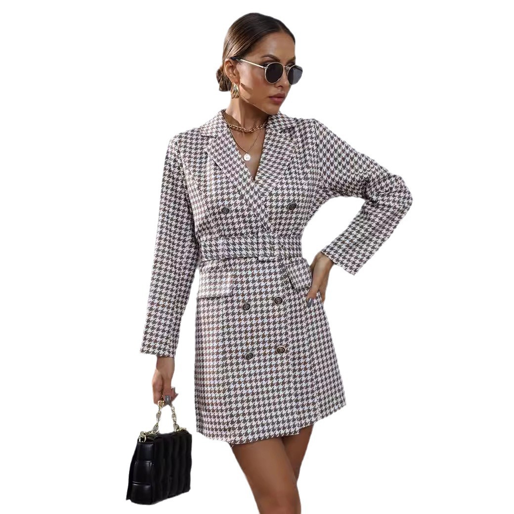 | nameOriginal | 2023 autumn and winter cross-border Amazon Europe and the United States women's foreign trade Europe station houndstooth plaid printed suit dress |