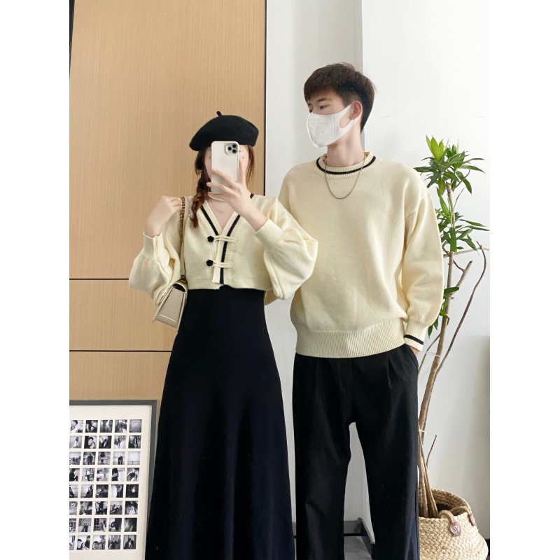 | nameOriginal | 2023 autumn and winter French style Platycodon grandiflorum two-piece women's sweater dress suit men's round neck sweater couple wear |