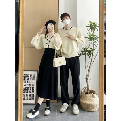 | nameOriginal | 2023 autumn and winter French style Platycodon grandiflorum two-piece women's sweater dress suit men's round neck sweater couple wear |