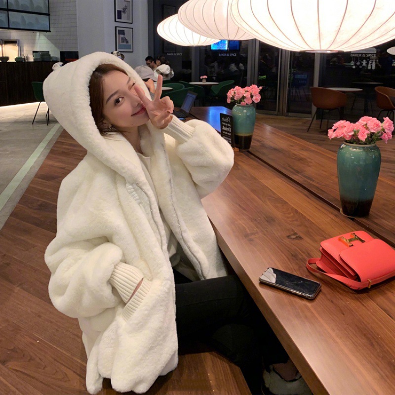 | nameOriginal | 2023 autumn and winter lamb wool coat Women's Mid-length loose hooded thickened Rex rabbit plush fur coat |