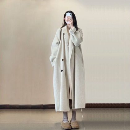 2023 Autumn and Winter Mid-length Over-the-knee Small Chanel Style Woolen Coat Women’s Lazy Style Slimming Small Woolen Coat Trendy