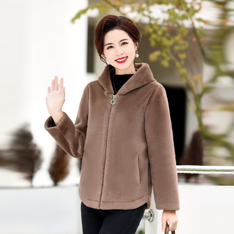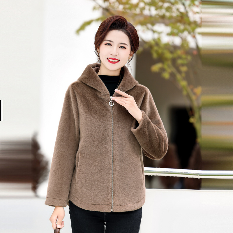 | nameOriginal | 2023 autumn and winter mom's faux mink velvet coat women's loose hooded short fur fur coat |