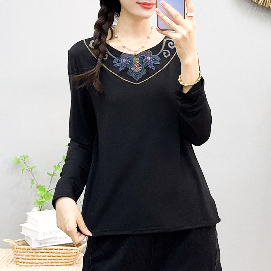 | nameOriginal | 2023 autumn and winter National style embroidered modal cotton inner long sleeve solid color women's artistic bottoming shirt |