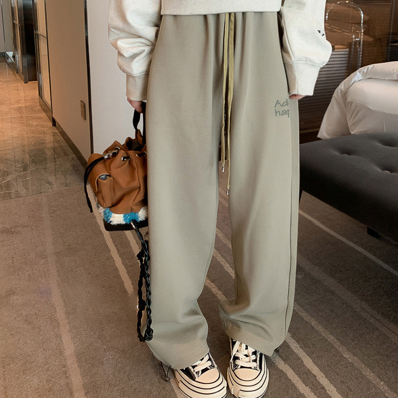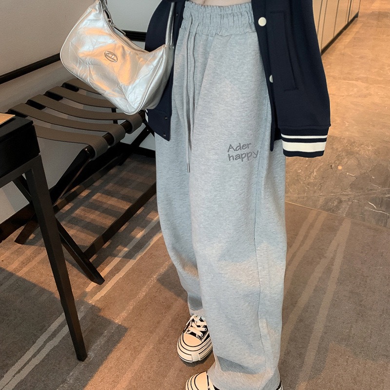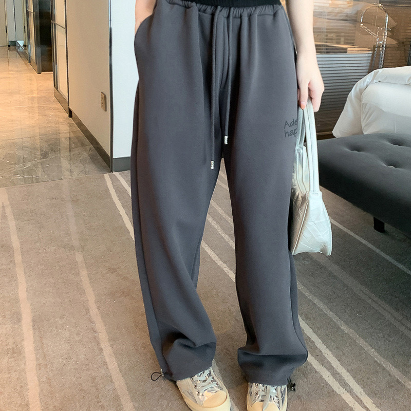 | nameOriginal | 2023 autumn and winter New ADER AE fleece-lined sweatpants women's loose draping straight pants wide leg drawstring casual trousers |