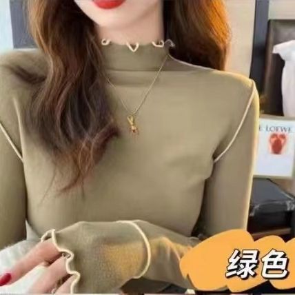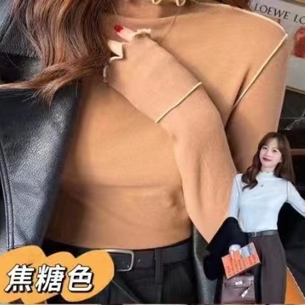 2023 autumn and winter New bottoming shirt fleece-lined thickened half turtleneck Western style all-match long-sleeved T-shirt top women’s wholesale