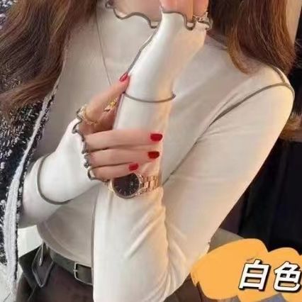 2023 autumn and winter New bottoming shirt fleece-lined thickened half turtleneck Western style all-match long-sleeved T-shirt top women's wholesale