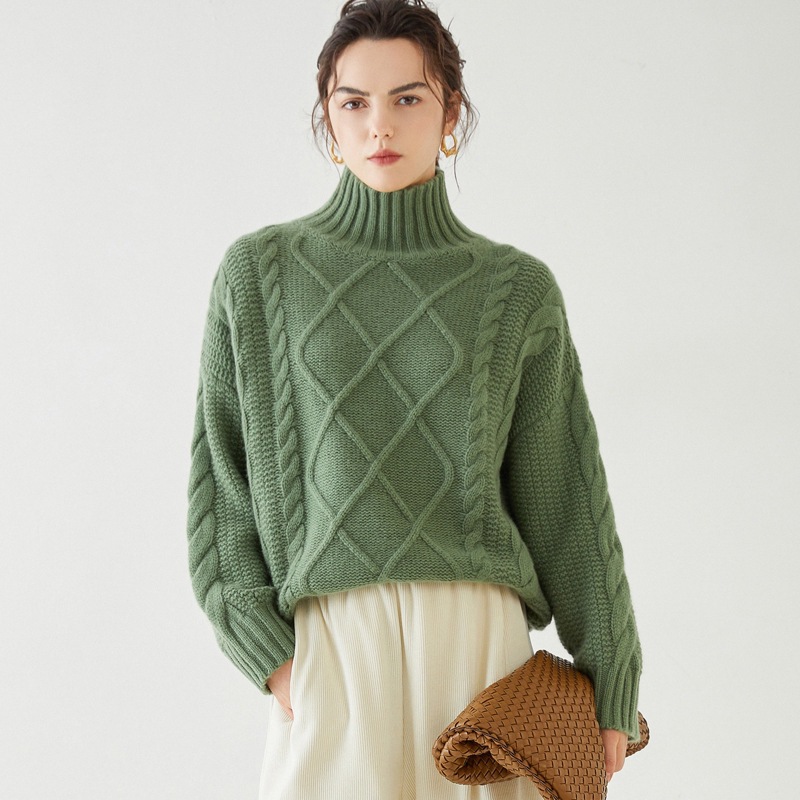 | nameOriginal | 2023 autumn and winter New cashmere sweater women's 100 pure cashmere half turtleneck loose cashmere twist solid color bottoming shirt |