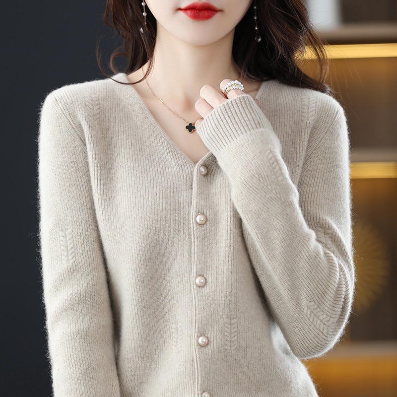 | nameOriginal | 2023 autumn and winter New cashmere sweater women's V-neck solid color cardigan Korean style long sleeve sweater loose wool knitted coat |