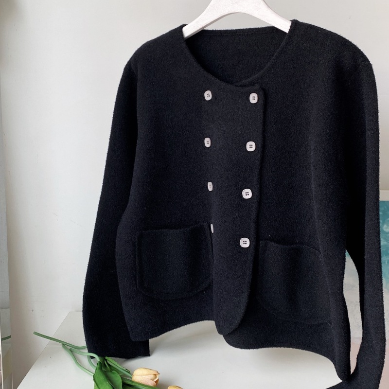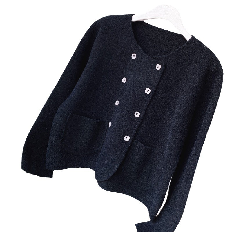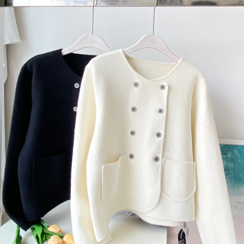 | nameOriginal | 2023 autumn and winter New Chanel style double-breasted woolen coat women's casual knitted round neck elegant wool coat |