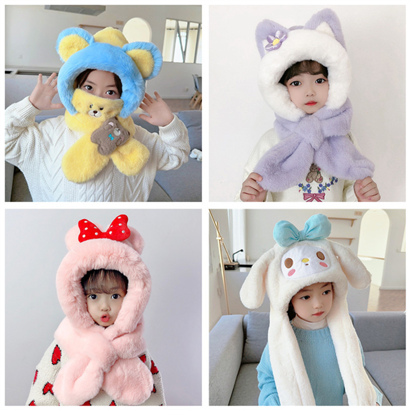 2023 autumn and winter new children's plush ear protection hat scarf integrated cute boys and girls cartoon duck two-piece set
