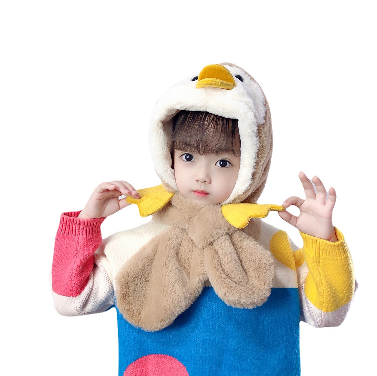 2023 autumn and winter new children’s plush ear protection hat scarf integrated cute boys and girls cartoon duck two-piece set