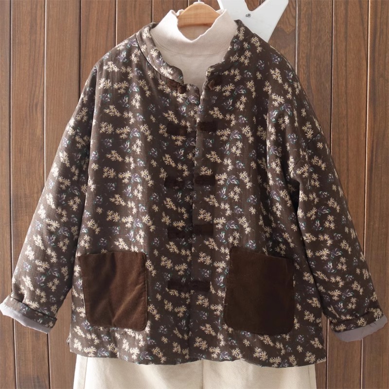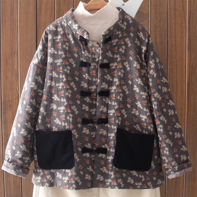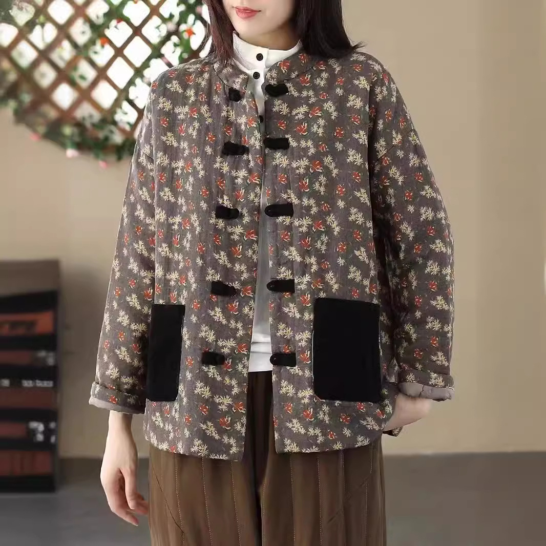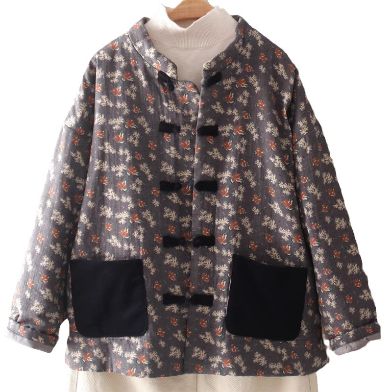 | nameOriginal | 2023 autumn and winter new cotton and linen printed quilted cotton-padded coat Women's Chinese retro buckle cotton-padded coat quilted coat top |
