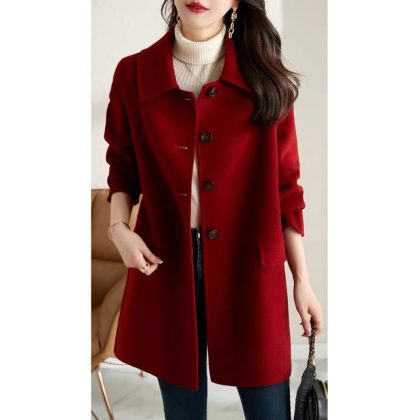 | nameOriginal | 2023 autumn and winter new double-sided velvet wool coat women's high-end handmade red woolen coat Korean style Hepburn style |