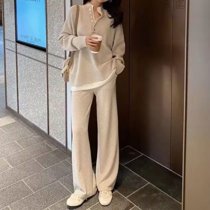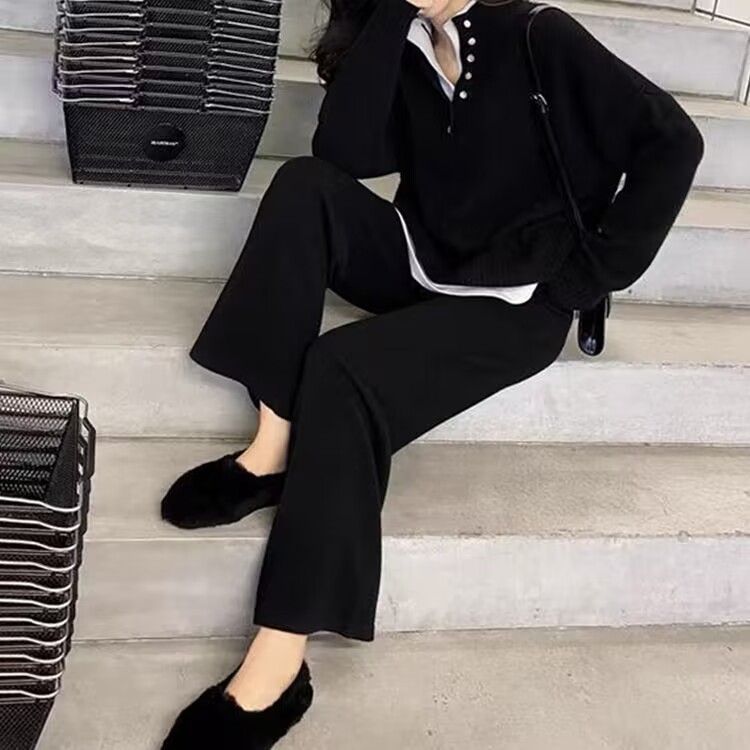 | nameOriginal | 2023 Autumn and Winter New Fashion Korean Two-Piece Jacket Fake Two-Piece Collar Loose Casual Sweater Wide-Leg Pants Trendy |
