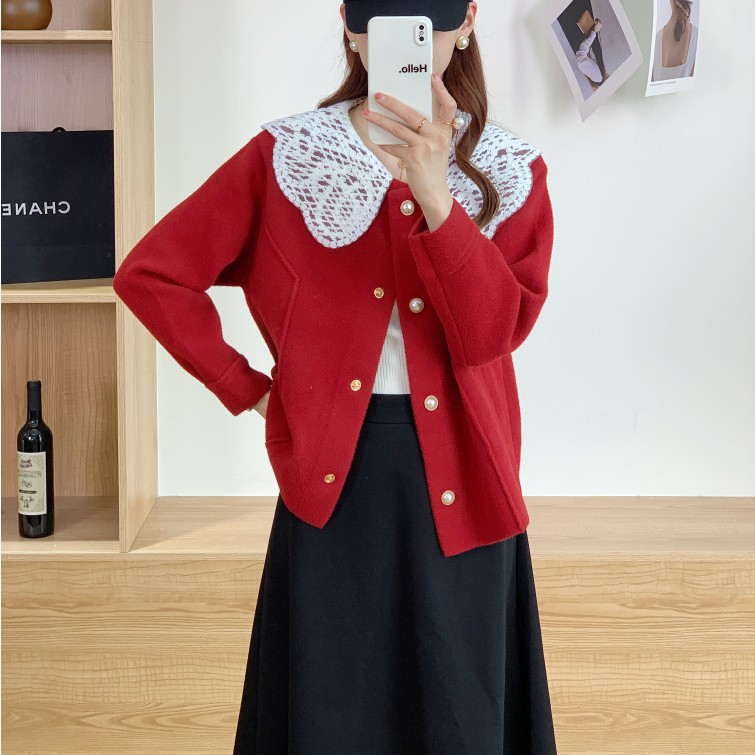 | nameOriginal | 2023 autumn and winter New French lace doll collar woolen coat women's short loose small knitted cardigan women |