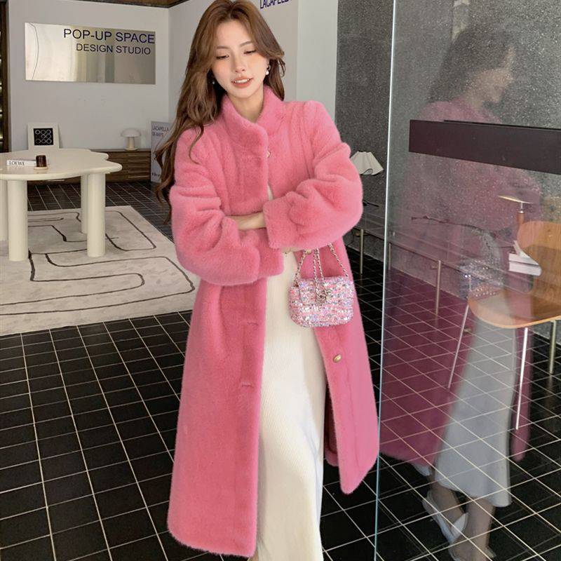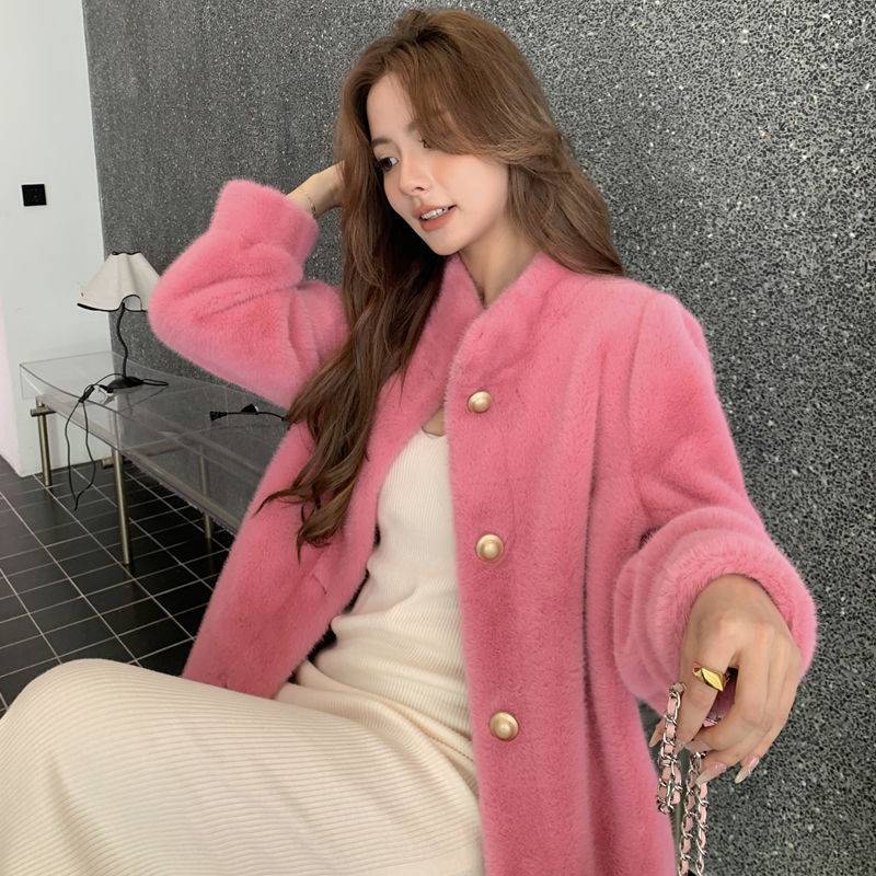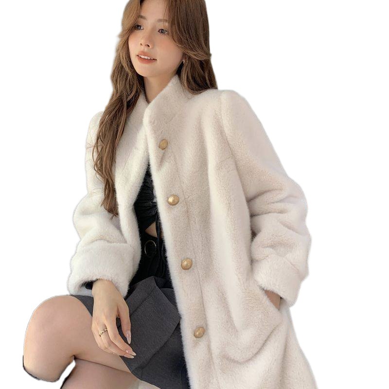 2023 autumn and winter new fur coat Women’s Mid-length mink fur environmental protection fur imitation leather stand collar coat