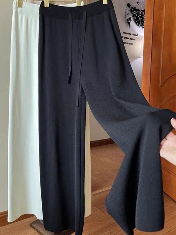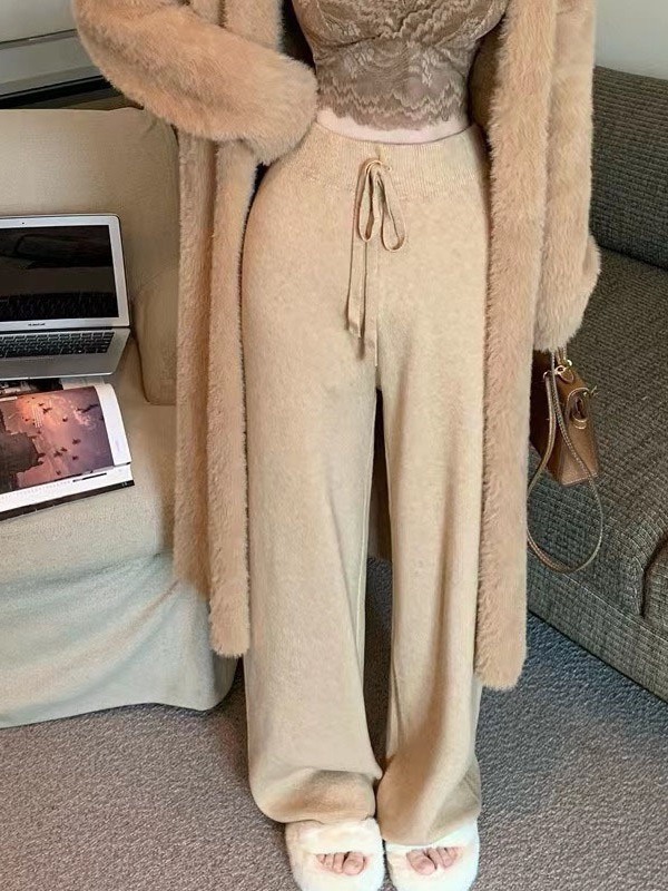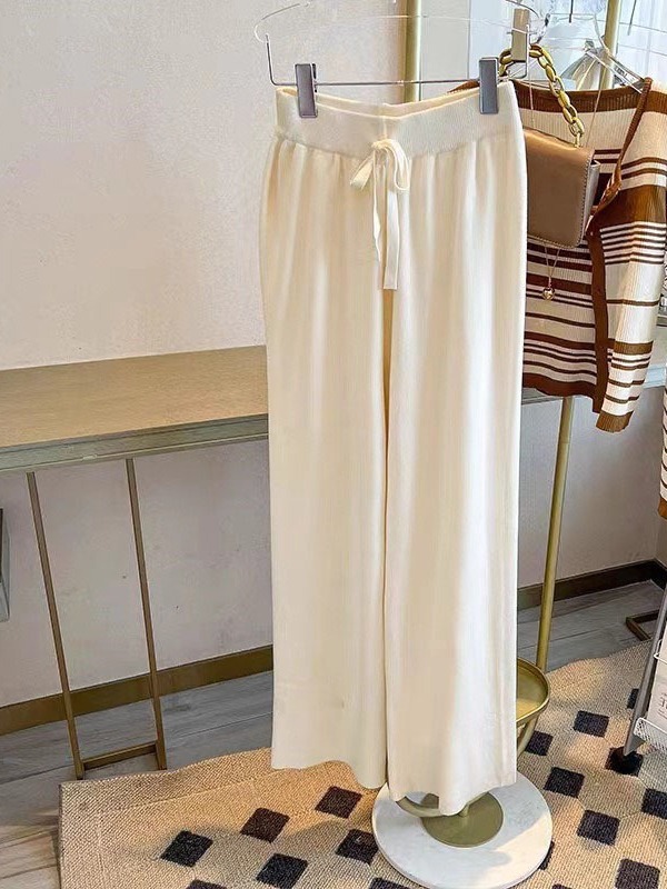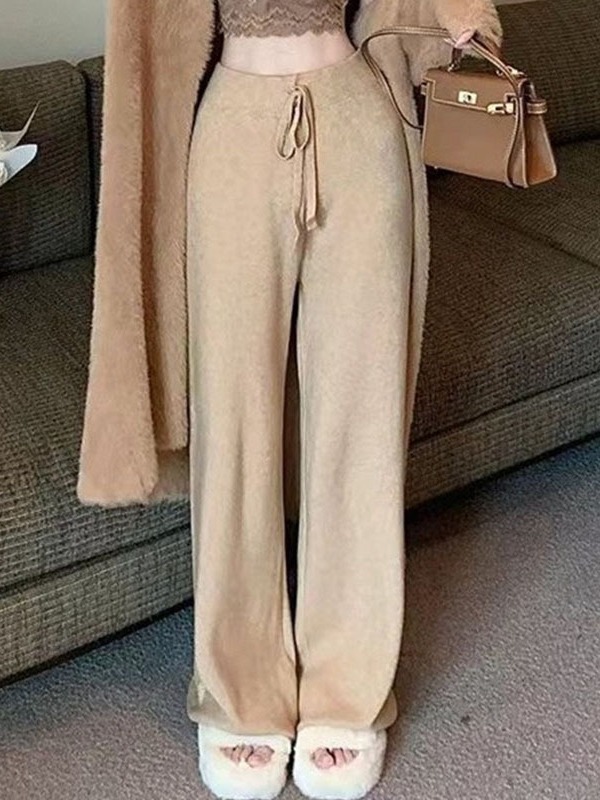 | nameOriginal | 2023 autumn and winter New High waist lace-up wide-leg pants women's loose knitwear women's trousers solid color casual straight pants |