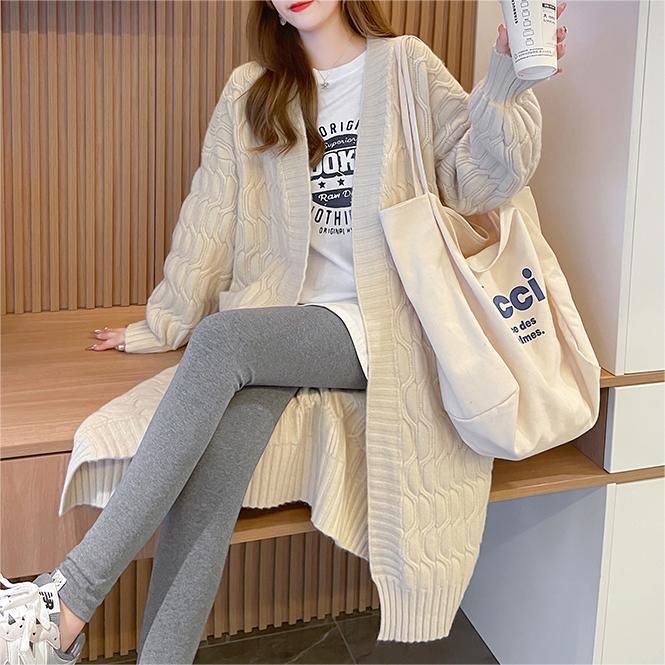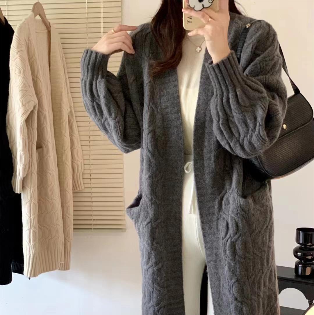 2023 autumn and winter New knitted cardigan mid-length Japanese retro twist lazy style soft glutinous sweater coat for women