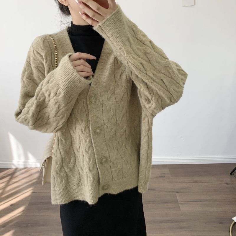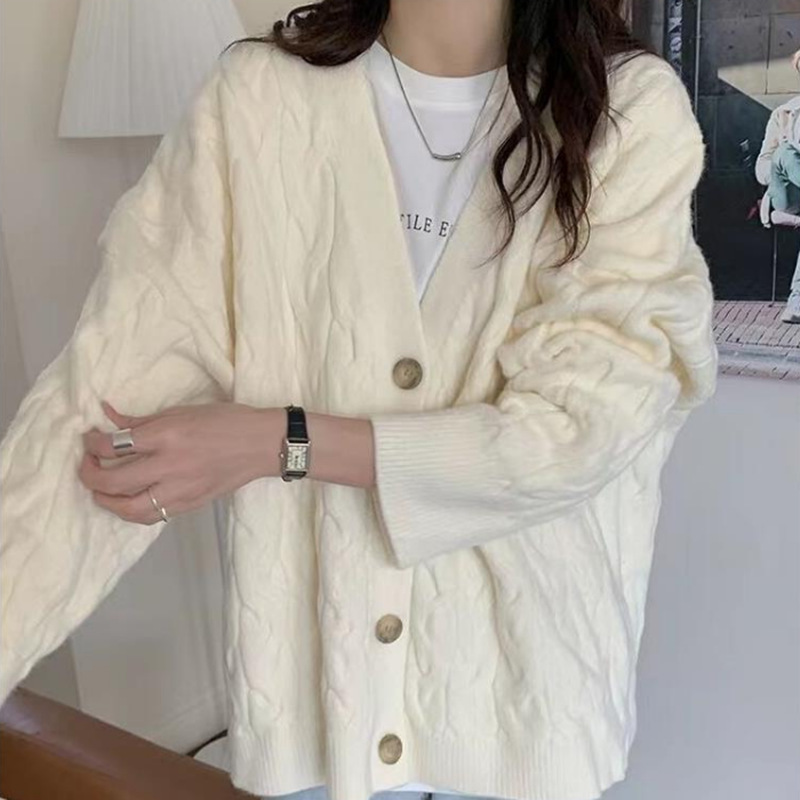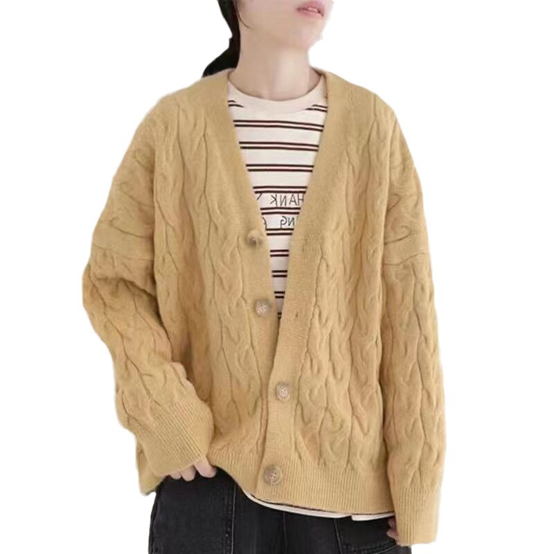 | nameOriginal | 2023 Autumn and Winter New Knitted Retro Twist Design V-neck Cardigan Lazy Style Loose Solid Color Sweater Coat for Women |