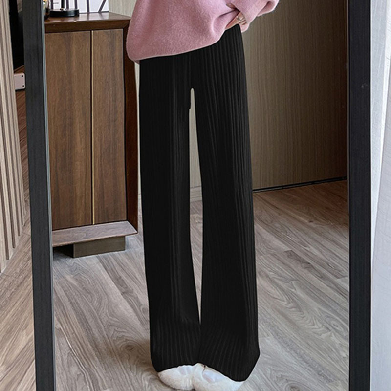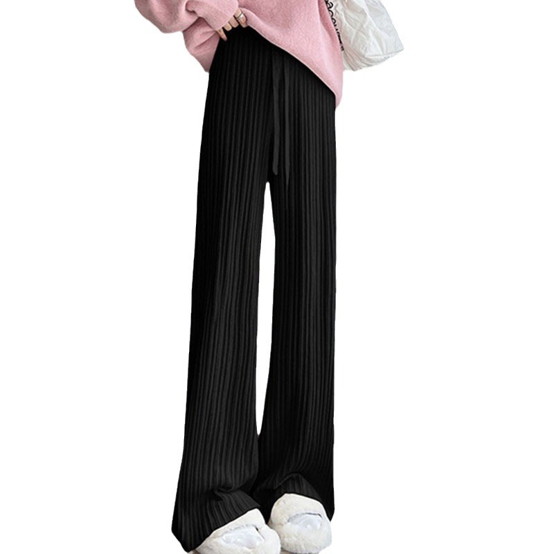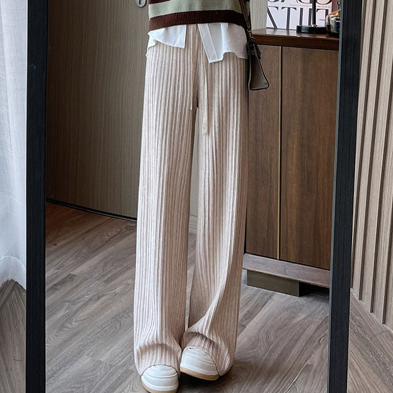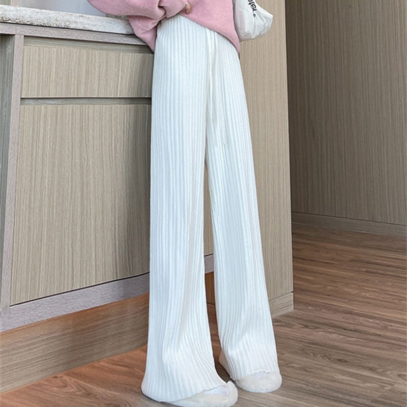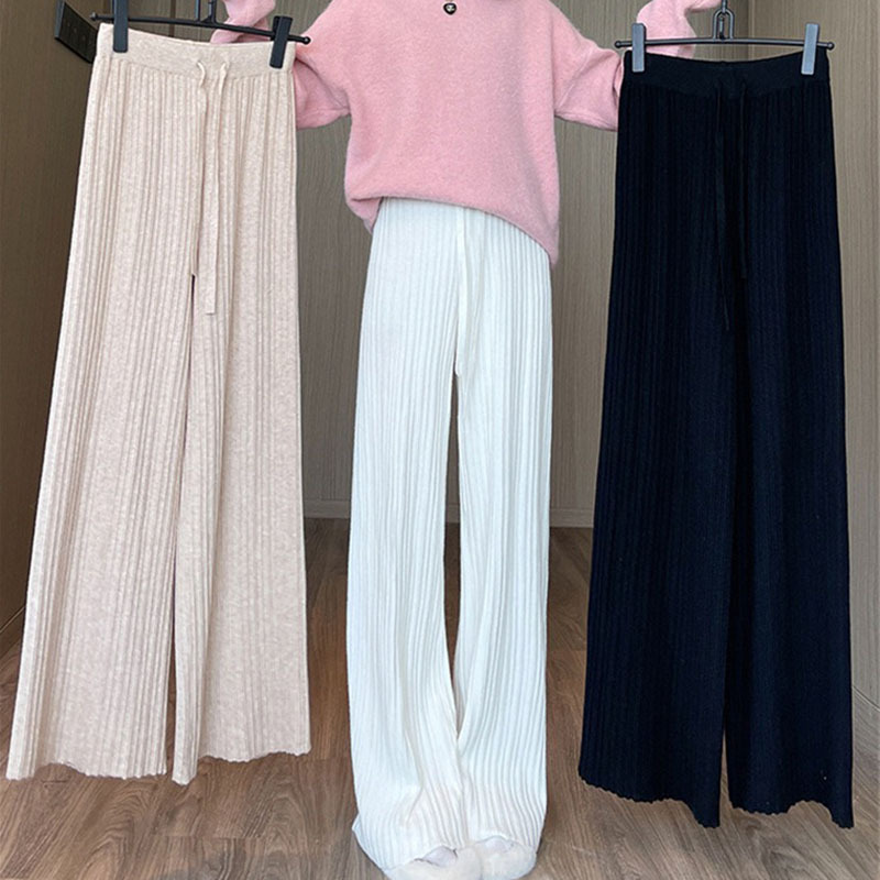 2023 autumn and winter New knitted texture wide-leg pants women’s drawstring high waist drape solid color loose casual trousers women’s clothing
