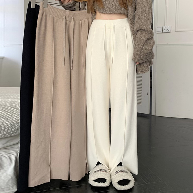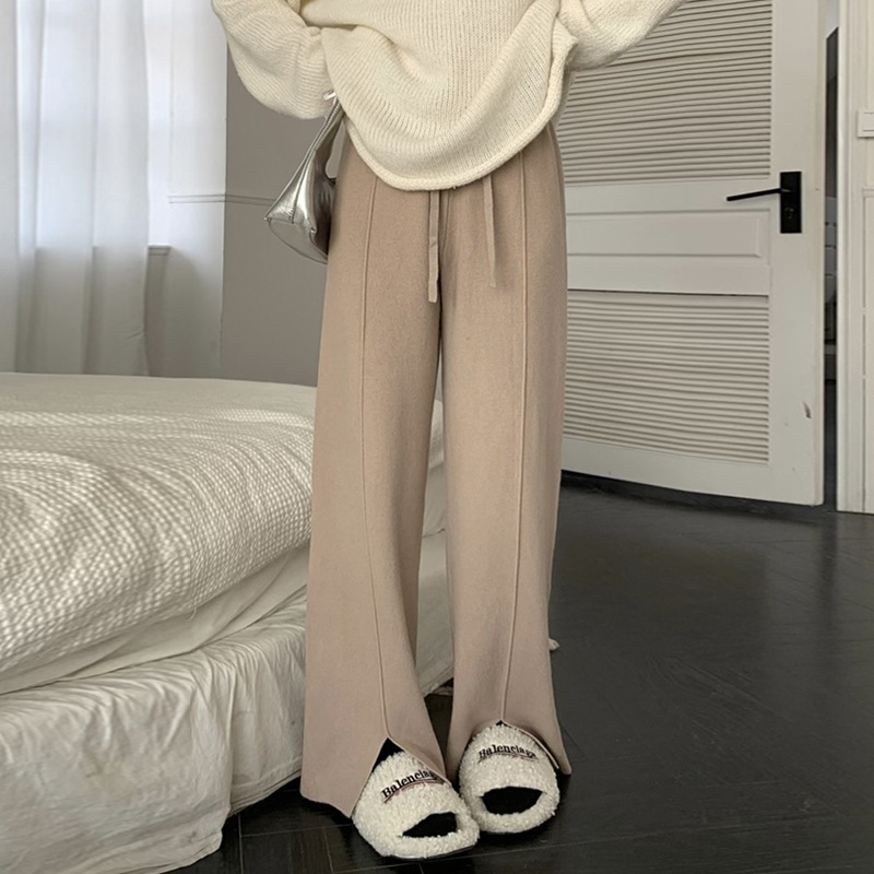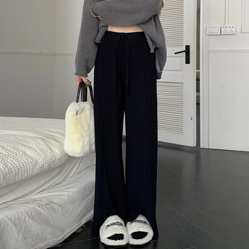 | nameOriginal | 2023 Autumn and Winter New Knitted Wide Leg Pants Women's High Waist Loose Slimming Casual Pants Vertical Straight Tube Split Pants |