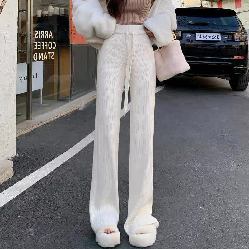 | nameOriginal | 2023 Autumn and Winter New Korean Style High Waist Straight Pants Women's Dape Knitted Trousers Women's Lace-up Loose Casual Trendy Pants |
