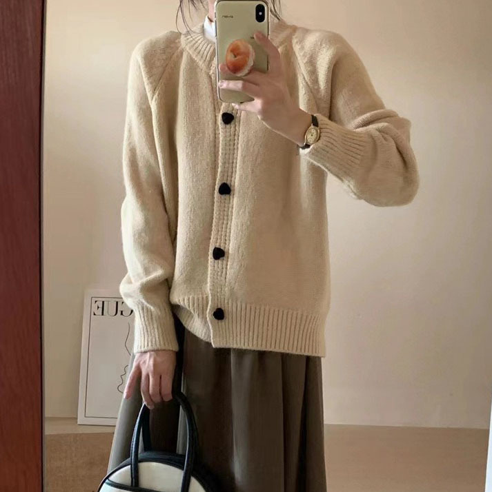 | nameOriginal | 2023 autumn and winter New Korean style love buckle knitted cardigan loose solid color round neck versatile casual sweater women's coat |