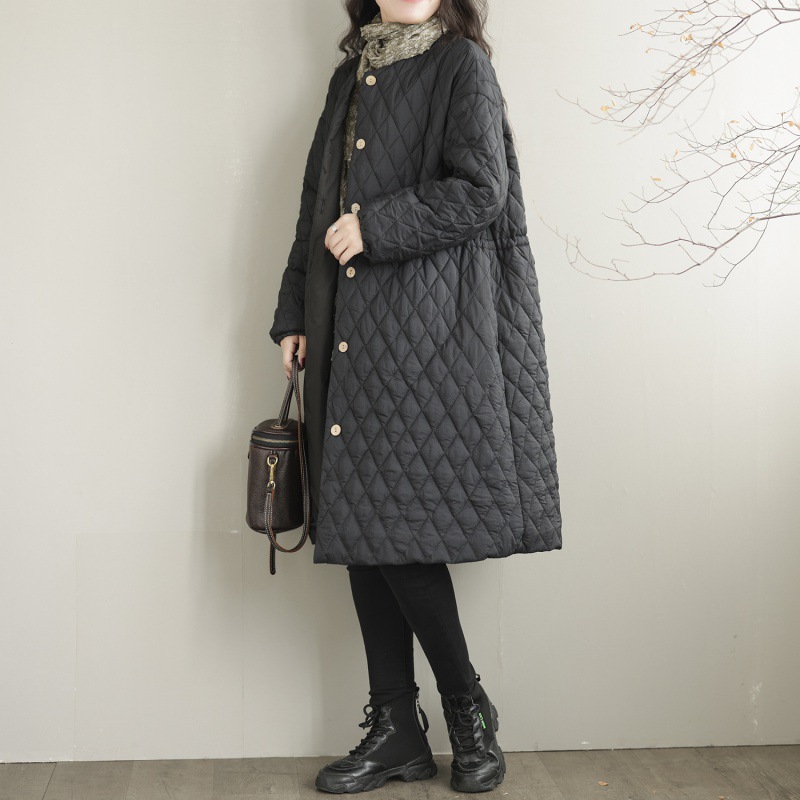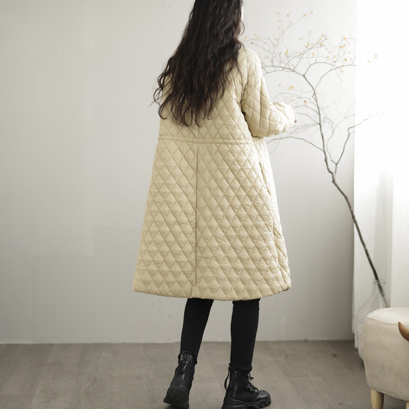 2023 autumn and winter New plus size women’s clothing Korean-style artistic diamond-shaped plaid loose slimming cotton-padded coat IF9399