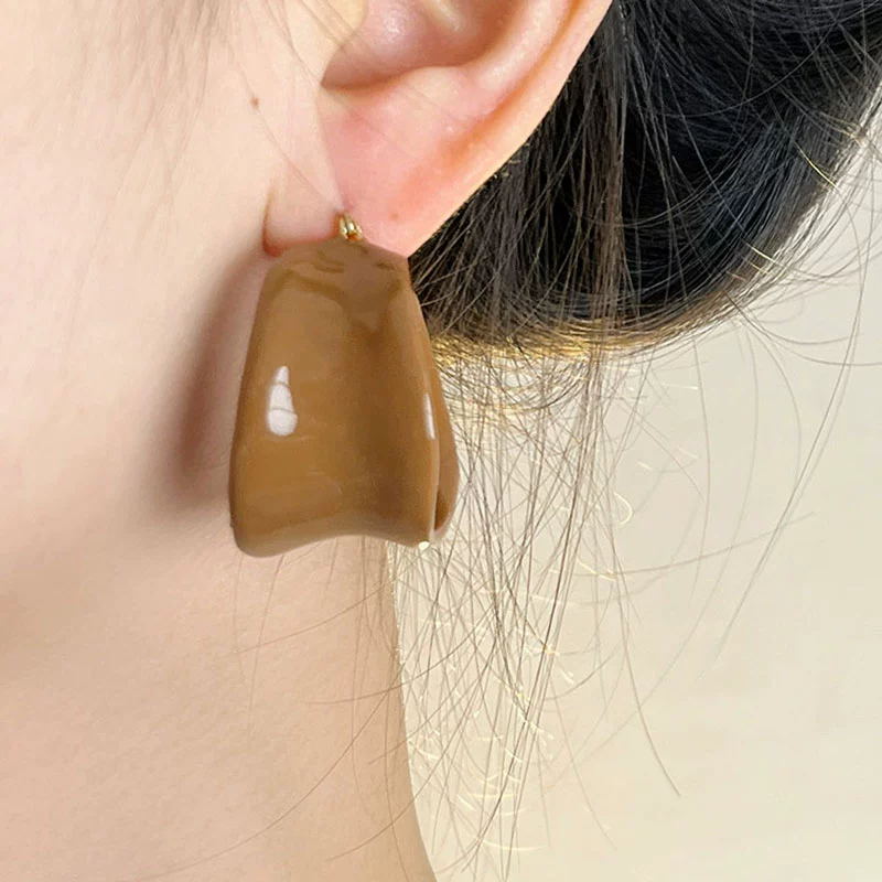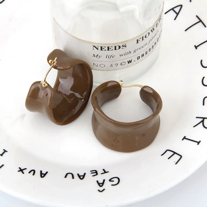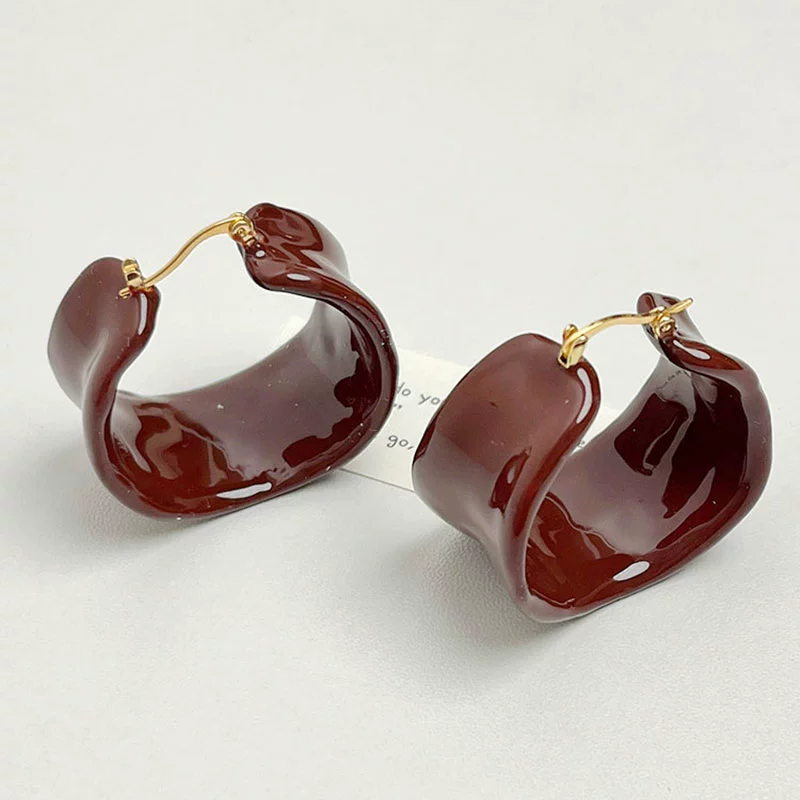 2023 Autumn and Winter New Retro Maillard Chocolate Color Enamel Drop Glaze Circle Earrings Light Luxurious and High-end Earrings